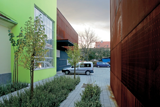 Nepogoda je već sama parcela između ulice prizemnica i jednokatnica, od kojih neke još nose biljege prošlog rata, i neuglednog pothodnika željezničke pruge. Još veća nepogoda, koja bi odredila i svaki drugi projekt na istom mjestu, bio je zahtjev da se skromna, ni po čemu značajna prizemna uglovnica dotadašnjeg Arhiva očuva i poveže s novom izgradnjom. Poštujući strukturu skromne ulice, arhitekti su odnos korpusa nove izgradnje odredili prema zatečenom zdanju i prema susjednim objektima. Cezure uvučenih ulaznih dvorišta koja dijele pojedine kuće pojavljuju se kao ulazni patiji i u tripartitnoj kompoziciji novog Arhiva, koju čine dva kontejnera i jedan toranj. Prostori arhiva, zapravo spremišta, koja koriste samo zaposelnici, moraju udovoljiti tehničkim zahtjevima čuvanja dokumenata, a tiču se svjetla, vlažnosti, temperature. Stoga se može prihvatiti da je težište arhitektonskog angažmana na vanjskoj pojavnosti - na tektonici i materijalnosti objekta. Važne odluke odnose se i na smještaj objekta u urbano tkivo u smislu nastavljanja građenja grada. Pritom središnji stubišni toranj sa svojom klorofilno zelenom bojom na razini signala preuzima ulogu urbanog znaka vidljivog i s veće razdaljine.