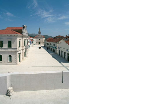 Opuzenska piazza, kao pravi mediteranski trg, pozornica je za svakodnevne rituale. Njome prolaze i na njoj borave i uzgajivači mandarina (gotovo svi Opuzenci) i neprilagođeni i stariji mještani koji su stigli iz Zagreba ovdje provesti ljeto. Oni što sjede u kafićima uz oba pročelja trga živo komuniciraju međusobno i s prolaznicima. Taj «mali Stradun» zapravo sjajno funkcionira. Stoga je arhitekt pristupio preoblikovanju ovog živog urbanog organizma tako da su «…zadržani gotovo svi tradicionalni tokovi ….kao i način korištenja javnih površina.» Arhitektova je namjera bila: «… omogućiti otkrivanje vrijednosti» te ukloniti «oblikovne nedostatke unošenjem prostornih i sadržajnih korektora.» Metoda kojom je arhitekt to postigao ukazuje na kontinuitet opusa, budući da neka rješenja podsjećaju na metode primijenjene u Pagu ili Umagu. No bez sumnje opuzenski trg samostalna je kreacija koja odgovara na izazove tog specifičnog mjesta u delti Neretve.