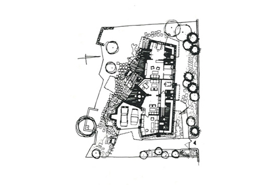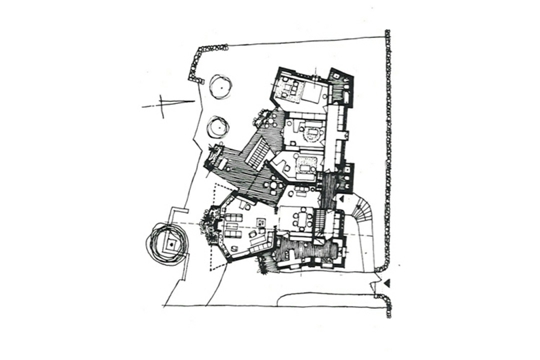 Kako u oblicima i volumenima, tako na tlocrtima Emili bilježi i oblikuje svoje prostorne zapise. Tlocrt je umjetnički grafikon, sustav sklopljen pravcima, crtama i linijama koje se stapaju u napetim krivuljama da bi u konačnici njima iscrtavao prostorije, kamine, zidove, gromače i bedeme. Svi elementi kuće i crteža koji ju prikazuju ideogrami su malog primorskog grada ili nekog starog kaštela. Centar kuće uvijek je fokusiran na kombinaciju dvaju elementa. Prvi je kamin s vješto oblikovanim dimnjakom koji je centar tlocrtne organizacije i držač prostorne kompozicije volumena građevine, a drugi je pogled na odabrani motiv i panoramu uokvirenu precizno proporcioniranim otvorom kojim se ujedno oblikuje i perforira volumen građevine.