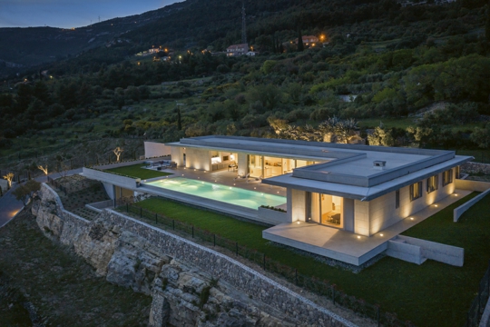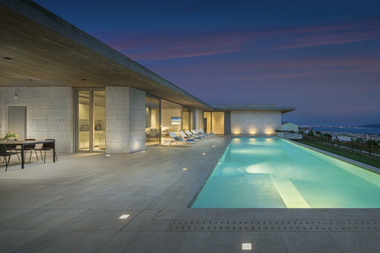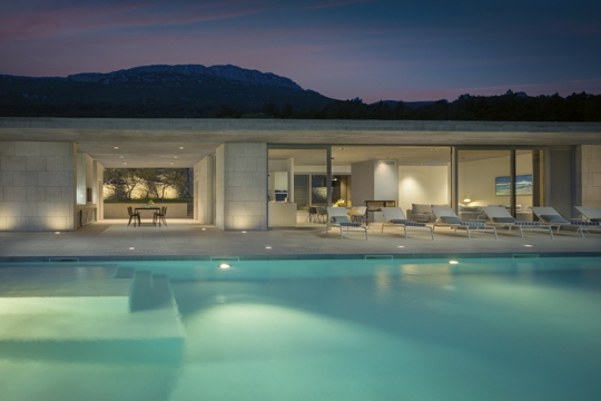 Sam čin projektiranja shvaćam kao odlazak u nepoznato, u prostranstva neizvjesnosti, pri čemu nam je jedini kompas naša intuicija. Svaku kuću određuju njezino mjesto, poetika prostornih želja i odgovor na pitanje što ona želi biti. Svjesna artificijelnosti svoje geste, ona pokušava s vremenom postati sastavni dio okolnog tkiva, onoliko koliko to dozvoljava geometrija njezine simbioze. Proces stvaranja arhitektonskog djela, proces njegove realizacije, kao i upotrebe nastalog organizma divergentni su procesi. Složeni su i nepredvidljivi, a nada živi upravo u prostorima neizvjesnosti. Oni nam govore o svoj jednostavnosti i mistici jednog djela. Tajnovitost se krije u njezinoj jasnoći. Zid odrezan sjenom strehe u srpanjskom popodnevu jednako će nas ganuti kao i mistika lokalnog gorja, dok nam stopala bezobrazno grije struktura kamenog opločenja. Određivanje mjesta i vremena čini lingvistiku svakog arhitektonskog procesa. Kuća na padini planine Kozjak iznad Kaštelanskog zaljeva, koju uokviruje ciklorama zapadnih kontura povijesnog grada Trogira – od vizura plavičastih kontura otoka Čiova i Šolte, preko ozelenjenog repera splitskog Marjana i modernističke strukture sjevernog dijela grada Splita, u kojem dominira blistava školjka poljudskog stadiona, do krajnje zapadnog devastiranog krajolika propale socijalističke industrijske arhitekture – progovara o značaju mjesta u nastajanju ovog djela. Ono baštini elementarnu L tipologiju prizemnih građevina. Uzdužni dnevni prostori bilateralno su orijentirani prema brijegu i prema moru, a okomito postavljeni spavaći prostori okrenuti su k istoku. Ova uobičajena tipologija može nas zavarati, jer ulaz se ne formira na spojevima cjelina, nego na krajnjem istoku građevine. Ovom gestom prividne celebracije ulaznog prostora, na stubištu i sjevernoj promenadi spajaju se kadrovi otvorenih i zatvorenih prostora. Naznačuje se longitudinalna slojevitost složenih prostora. Materijalnost opne otkrivena je u dijalogu betonskog tkiva i kamene obloge. Tako se linearna geometrija artificijelnog povezuje sa stereometrijom zatečenog pejzaža. Pomišljamo kako to i jest zadatak svakog arhitektonskog djela – pokušati ostvariti balans, dijalog novonastalog i zatečenog. Kroz tu prizmu valjano je promatrati ovo djelo koje leži na dvije horizontalne ploče, a između njih arhitekti režiraju prostore življenja elementima svojih vještina.
