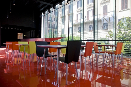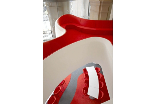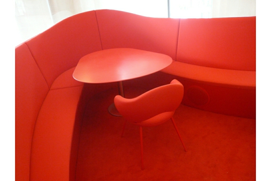 Arhitektica često dizajnira opremu za vlastite projekte, kao za rimski macro ili za restoran pariške Opere. Taj neovisni implantat, slobodno postavljen u neobarokno zdanje, određen je opet živom crvenom bojom koja za Odile Decq znači život, svjetlo, vitalnost. Meke, zakrivljene, u crveno uronjene forme naznačuju glamuroznu pa i erotiziranu atmosferu, čemu doprinosi i specijalno dizajnirani naslonjač oblikovan kao meka školjka koja će nekoj antonionievskoj dami bez kamelija pružiti više od udobnosti.