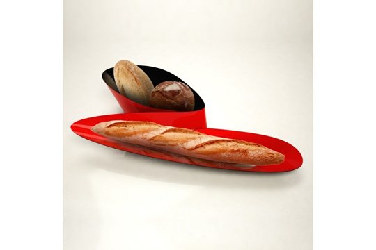 Posve drugi karakter imaju objekti stolne opreme za tvrtku Guzzini – ovi crveno-crni predmeti izražavaju specifični francuski savoir vivre ili barem našu predodžbu o tom općepoznatom pojmu. Tu su varijante košarica za kruh, objekti dvostruko zakrivljene forme za prezentaciju baguettea – kruha koji se u Francuskoj peče tijekom cijelog dana kako biste u svako doba uživali u svježoj hrskavoj kori. Isto tako, užitku za stolom služi kompaktna kutija za maslac napravljena tako da je maslac iz hladnjaka moguće izravno servirati na stol. Treći element opreme, čaša obojena u više nijansi crne, trebao bi omogućiti da rubinska boja bordoškog vina postupno dođe do svog punog izražaja.