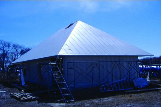 Presjek kuće strukturiran je na sljedeći način: drveni okvir od japanskog ariša omotali smo membranskim materijalom od poliestera s fluorougljičnim premazom. Unutarnji dio je prekriven uklonjivom membranom tkanine od staklenih vlakana. Između dvije membrane umetnut je poliesterski izolator od recikliranih PET boca kroz koji prodire svjetlo. Ovakav sastav temelji se na zamisli da se konvekcijom zraka između slojeva unutrašnjost kuće zbog cirkulacije može održavati ugodnom.