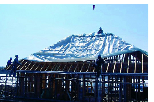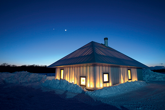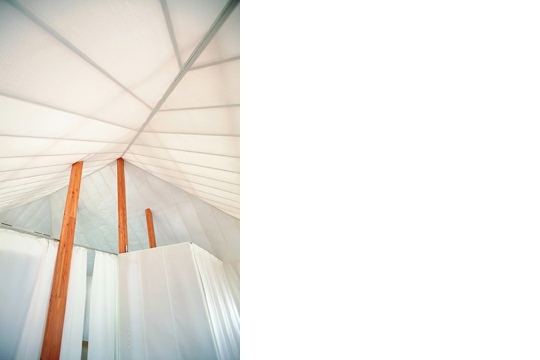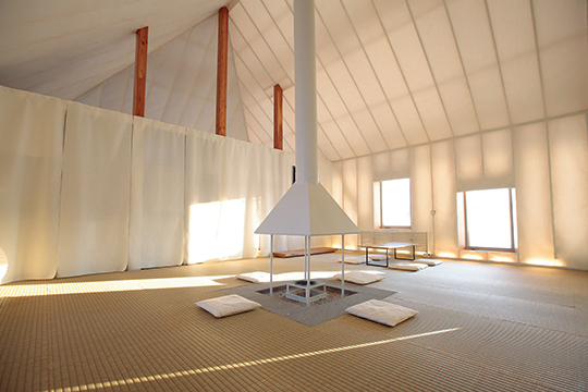 Izolaciju ne tretiramo samo u sklopu debljine toplinsko-izolacijskog materijala, što je bio tipičan stav statičkog inženjerstva dvadesetoga stoljeća. Cilj nam je zamijeniti ga dinamičkim inženjerstvom zaštite okoliša za ovo doba. To što smo iskoristili zračenje topline s tla je dio toga koncepta. Zimi ovdje provjereno možete provesti nekoliko dana bez korištenja podnog grijanja. Drugi razlog zašto smo kuću pokrili membranskim materijalom je naša čežnja za životom okruženim prirodnim svjetlom, kao da ste omotani dnevnim svjetlom usred travnjaka. Ne oslanjajući se ni na kakav sustav rasvjete, jednostavno ustajete kad se razdani, a na počinak idete kad se smrači – očekujemo da vam ova membranska kuća omogući život usklađen s ritmom prirode.