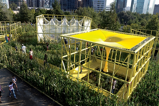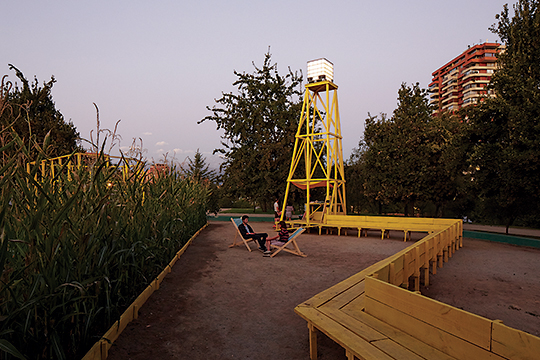 …Na sličan način u našem radu za YAP-Constructo 2012./13., Vrt staza koje se račvaju, gradnjom labirinta težimo stvoriti okruženje sporosti; novo mjerilo za dokolicu i nepredvidivo u parku koji se inače ustrajno usmjerava i transformira u produtivan i unosan prostor. Želja nam je da se posjetitelji izgube, baš kao i Poliphilo u svome snu, da žurbu grada ostave iza sebe. Ova će im tišina na kraju omogućiti da percipiraju drugačije: sporo, oklijevajući, beskorisno, uspostavljajući tako vezu sa svojim tijelima kroz neočekivano senzualno iskustvo. To bi moglo donijeti potpuno novo razumijevanje prostora koje je u mogućnosti smjestiti naše tijelo natrag u središte arhitekture.
