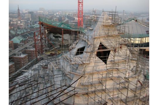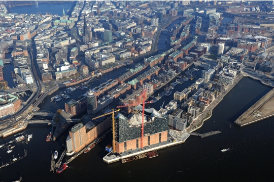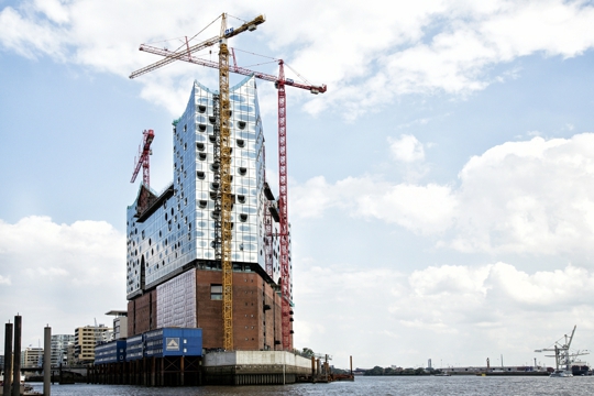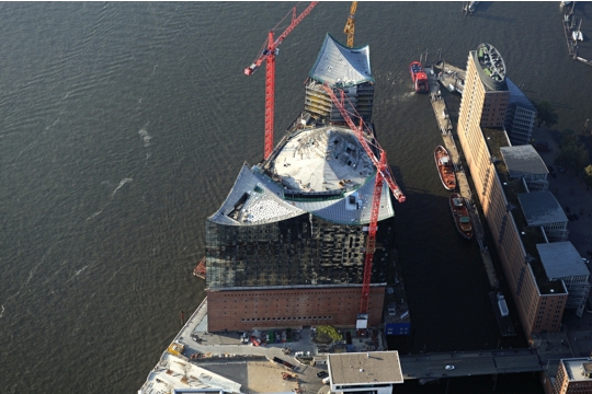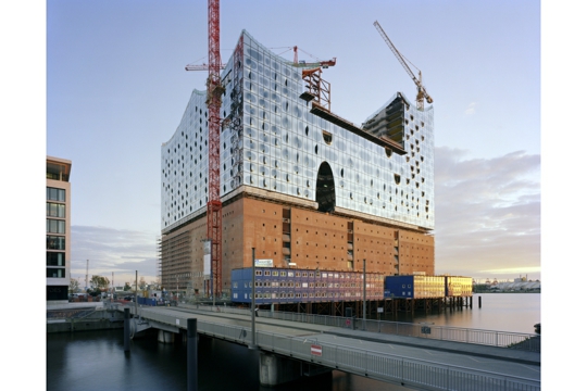 Elbphilharmonie u Hamburgu arhitekata Herzoga & de Meurona bit će dovršena u jesen 2016., a prvi koncerti u velikoj dvorani koja može primiti 2150 ljudi održat će se u proljeće 2017. Ovaj simbol kulture Hamburga 21. stoljeća oslonit će se na čvrste temelje industrijskog grada 20. stoljeća. Dok je većini njemačkog urbanizma od 1945. prethodio čin rušenja, Elbphilharmonie se gradi na skladištu Kaispeicher A, koje je 1963. projektirao Werner Kallmorgen. Nova zgrada koja se diže 110 m poviše rijeke Labe eterični je stakleni kristal usidren masivnim skladištem od cigle. Zajedno će udomljavati složeni program Elbphilharmonie: tri koncertne dvorane s popratnim prostorima, podignutu javnu Plazu, restoran i kavanu, hotel, privatne stanove, konferencijske sadržaje i garažu. Prepoznavši kvalitete skladišta Kaispeicher, Herzog & de Meuron svoje su intervencije sveli na minimum. Umjesto da nose teret vreća kakaa, temelji skladišta nosit će teret dominantne koncertne dvorane. Osim navedene konstruktivne potpore, skladište Kaispeicher odredilo je i površinu nove zgrade koja se diže iz trapezoidnog oblika skladišta.