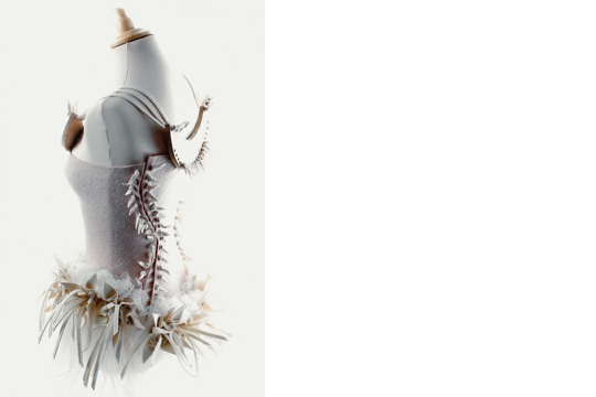 Dženisa Pecotić: Da, radila sam jednu izložbu posvećenu Karlu Blossfeldtu. On je bio kipar, ali i fotograf. Fotografirao je mediteransko bilje. Došao je na Sredozemlje po inspiraciju. Onda sam ja to bilje pretvorila u svoje odjevne predmete. Jako mi je zanimljiva ova vaša primjedba koja se odnosi na fetiš....