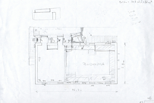 Vladimir Križanić: U trenutku ulaska u ovaj prostor nisam imao dovoljno sredstava za pokretanje adaptacije. Budući da je tako bilo dvije-tri godine, imao sam dovoljno vremena za planiranje. Pokušavao sam neke stari uočene u knjigama o arhitekturi primijeniti na svojem primjeru, ali ih nisam želio preslikati copy-paste, nego ih prilagoditi svojim potrebama. Znao sam da želim imati dobar vrt, tu neprekinutu komunikaciju interijera i eksterijera bez stepenica. Nije potrebno puno razmišljati. Potrebno se samo zamisliti u prostoru koji koristiš i elementi će se sami posložiti. Treba komunicirati s više ljudi i postepeno donositi odluke. Mnoge sam stvari rješavao u hodu, npr. ovu sam policu namjeravao napraviti od slame. Htio sam da ima teksturu, refleksiju tople i nejednake boje, ali se to iz više razloga pokazalo kompliciranim pa sam slamu zamijenio kartonom. Samo sam se opustio i pokušao napraviti ono što želim.