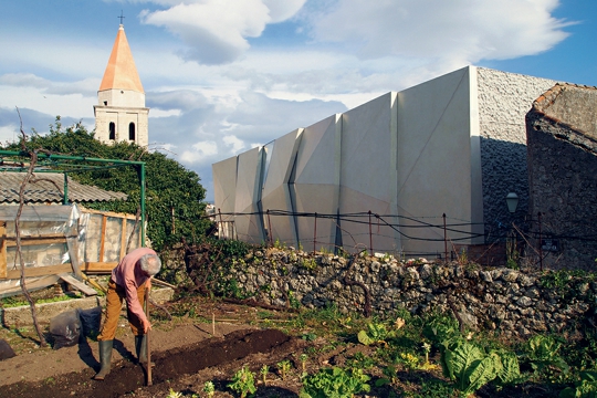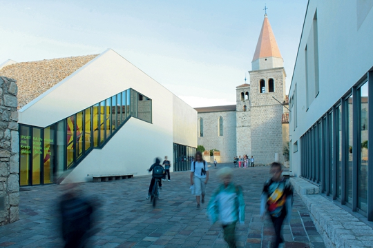 Kad biste poštenog arhitekta zamolili da razvije projekt ove vrste u srcu povijesnog gradskog središta Krka, prvi bi mu osjećaj bio da tražite nešto što po svojoj prirodi nije moguće uspješno izvesti. Bilo kakvu intervenciju u blizini povijesnih građevina i kulturne baštine moraju duboko analizirati ne samo korisnici već i čitava zajednica arhitekata koja smatra da takve prilike dopuštaju samo jedan pokušaj te da će i najmanju grešku neizbježno uvećati protok vremena. Ovakvi su projekti posebno teški jer je tijekom gradnje potrebno donijeti mnogo važnih odluka; mnogo je skrivenih zahtjeva i okolnosti koje izlaze na vidjelo tek nakon što se uhvatimo u koštac sa složenom materijalnošću i povijesti lokacije i okoliša. Takve su posebne karakteristike još teže kad se program mora umetnuti u srce grada, a program je sportska dvorana, sa svojom veličinom i zahtjevima. Ipak, usprkos svim inicijalnim predviđanjima, intervencija Idisa Turata na Krku istovremeno je maštovita i, usuđujem se reći, zaista poštena.
