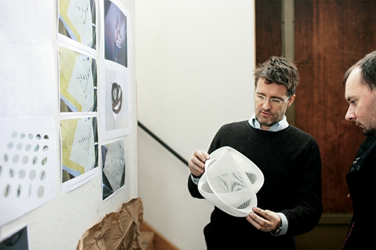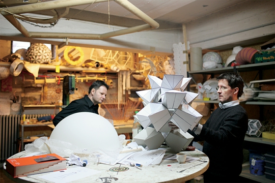 Eliasson: Čitava je stvar još uvijek vrlo dvojbena, no pokušavam pronaći putanju koja uključuje sumnju na produktivan način. Izazov je vidjeti možemo li učiniti nešto tako radikalno kao što je škola, a u isto vrijeme dopustiti sumnji da nam bude vodilja. Igramo se s nazivom instituta – razmišljao sam o Institut für Zweifelhafte Raumforschung, što znači Institut za dvojbena prostorna istraživanja. To je radni naziv, ali ga vjerojatno nećemo upotrijebiti. Radi se o dijelu veće suradnje koju bih htio naglasiti između studija, muzeja i sveučilišta. Studio kao što je ovaj se očito bavi različitim vrstama produkcije, a o muzejima ili izložbama cijelo vrijeme razmišljam na taj način da omogućuju komunikaciju umjetnosti. Komuniciramo ono što radimo ovdje. Isto tako sam htio raditi na proizvodnji znanja koje se odvija u sveučilištima i u čitavom obrazovnom sustavu; htio sam promisliti pedagoška načela. Zato praksu tih triju institucija opisujem kao produkciju, komunikaciju i znanje. Isto tako sam predložio ime ProCoKnow [PROduction COmmunication KNOWledge]. Htio bih razviti koncept škole koja omogućava prostorne i umjetničke eksperimente, socijalno-etičke eksperimente, a koji opet ostavlja prostora za izložbe i njihovo komuniciranje; škole također mogu imati internetske stranice i časopis. Bio sam povezan s nekoliko arhitektonskih i umjetničkih škola diljem svijeta, od Azije do Amerike, no većinom u Europi. Alarmantno je jasno da nešto nije u redu, no jednostavno je teško učiniti nešto u vezi toga. Kad kažem prigrliti sumnju, mislim na sumnju kao vrstu progresivne kritike. Ima jedan umjetnik, Carsten Höller, koji se bavio time. U njegovoj terminologiji, u trenutku kad ste sigurni, rad nestaje. Škola je dio Universität der Künste u Berlinu. Ja ću vjerojatno imati između 15 i 20 studenata, ili sudionika, što je možda bolji naziv, te će imati profesore-suradnike ili gostujuće profesore. Bit će to laboratorij sličan onome u Serpentine’s paviljonu u Londonu, osim što se neće sve dogoditi u jednom danu. Ne tiče se to imanja studija ili škole. Radi se o imanju sfere s dvije diskretne jedinice, zbog čega su one locirane tako blizu jedna druge – gotovo u istom prostoru.