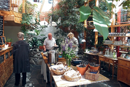 No, vratimo se na cestu kojom zelenom jamtlandskom ravnicom iz Östersunda vozimo na zapad, prema Åreu, čuvenome švedskome skijaškom centru, dobro poznatome ljubiteljima toga sporta u čitavome svijetu. Negdje na pola puta, slijedeći savjete kuhara iz regije, skrećemo u mjestašce Mörsil, i to s vrlo određenim razlogom. Tamo se, naime, nalazi Natur Café u Kretsloppshusetu (doslovno Kuća životnoga ciklusa), café-restoran s trgovinom smješten usred cvijetne raskoši. Radi se zapravo o održivoj ekološkoj zadruzi koja okuplja četrdesetak volonterki (same sebe nazivaju gardengirls), a bavi se od uzgoja organskoga povrća i free-range pilića do širenja ideje o održivu načinu života.