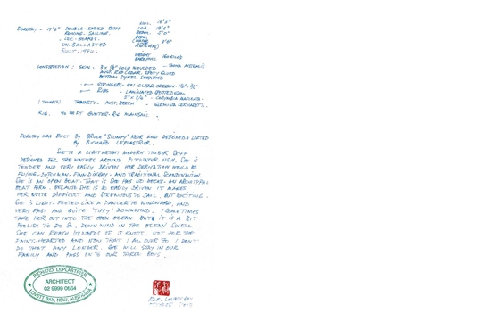 Živim u Pittwateru skoro četrdeset godina, ali plovim čak i dulje, od svoje devete godine. Većinu toga vremena proveo sam utrkivajući se, a na utrke sa sobom ne nosite ništa. Sve morate svesti na apsolutni minimum. Tako sam počeo s projektiranjem brodice koja je bila kulminacija cijelog tog iskustva. Trebala je biti izvrsna za Pittwater, što je značilo da je trebala ne samo biti jedrilica nego i imati vesla. To je bilo teško pomiriti jer jedrilica treba biti stabilna, a brodica na vesla treba biti duga i tanka tako da se može vući kroz vodu. Treba biti nestabilna.