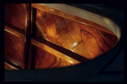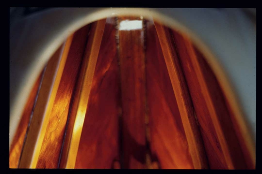 Mojemu prijatelju Stumpyju trebalo je sedam tjedana da je izgradi, a meni godina i pol da je dovršim. Izrađena je od debele i nevjerojatno snažne kore australske crvene cedrovine široke 1/8 inča, lamelirane i lijepljene smolom. Nazvao sam je Dorothy, po svojoj majci. Dorothy je bila lagana poput ljuske jajeta. Prekrasno je plovila, ali ste održavali ravnotežu svojom tjelesnom težinom. Bila je opasna – ne slučajno, nego zbog svoje konstrukcije.[2]