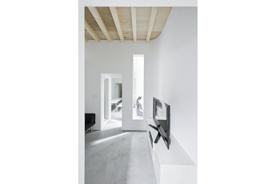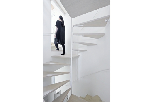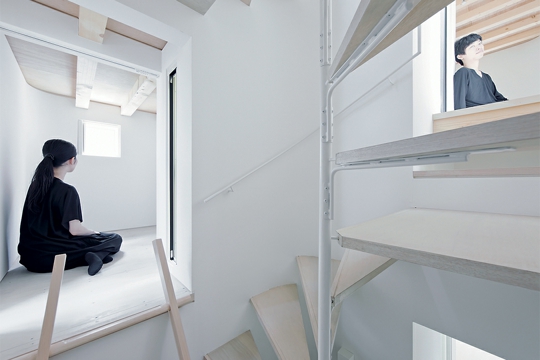 Parcela je uska pa je minijaturni format zgrade bio izazov. Trideset i dvije minijaturne prostorije, od kojih je svaka širine barem 3 tatamija, i mala veranda čine ovaj složeni kompleks. Obzirom na njihovu brojnost i razliku u veličini, stvoren je dojam lutanja ogromnim dvorcem. Vanjski prostor isprepliće se s unutrašnjim kao posljedica međuodnosa pojedinih volumena i otvora različitih dimenzija, što rezultira stvarnom i psihološkom povezanošću prostorija. Veličinom i položajem otvori također uspostavljaju odnos s okolinom – od većih, koji omogućuju komunikaciju među stanarima, prema manjima na vanjskoj ovojnici kuće, koji čuvaju privatnost.