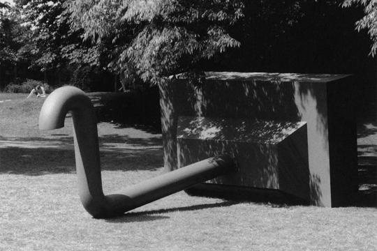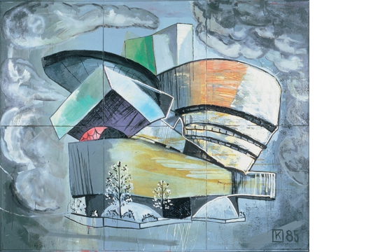 Na izložbi u Grazu težište je stavljeno na Kippenbergerov graditeljski posao, prije svega na začudne objekte, instalacije i nekoliko platna koja prikazuju neobične arhitektonske tvorevine, uključivši i dvije virtualne priče. Prva se odnosi na njegov privatni muzej na grčkom otoku Sírosu, gdje je zapušteni arhitektonski skelet nikad realizirane klaonice 1993. godine proglasio novim muzejom te ga nazvao MOMAS (Muzej moderne umjetnosti Síros) s jasnom aluzijom na newyoršku instituciju. S tom razlikom što Kippenbergerova akvizicija nije skupljala ni producirala umjetnine. Naime, njezina glavna aktivnost svodila se na tiskanje pozivnica - diljem svijeta distribuirala ih je umjetnikova galerija u Kölnu - no obuhvaćala je i druženja na licu mjesta u uskom krugu poznanika i istomišljenika te žive umjetničke projekte koji su se uglavnom bavili zatečenom geografijom i objektima u blizini sablasne građevine bez zidova i prozora. Skelet MOMAS-a, visoko iznad mora na stjenovitom zemljištu cikladskog otoka, neodoljivo je podsjećao na atensku Akropolu. Strateški je, nema sumnje, slijedio Broodthaersov Muzej orlova, uz važnu distinkciju - fiktivna institucija gotovo da nije prekoračila granice virtualnog. U njoj nije bilo mjesta za zbirku reprodukcija ni nomadsku kolekciju koja bi mijenjala lokacije kao što je bio slučaj s Broodthaersovim antimuzejom dva desetljeća ranije. Muzej na Sírosu imao je fiksnu lokaciju, na periferiji umjetničkih zbivanja, a prema riječima jednog od sudionika otočkih druženja i ujedno umjetnikova asistenta Ulricha Strothjohanna, nastao je kao Kippenbergerova reakcija na postojeće muzeje, na njihovu strategiju te, između ostalog, jer je u percepciji njihovih ravnatelja i posjetitelja smatran autsajderom. Prirodno je da hiperaktivni umjetnik, kakav je bio Kippenberger, nema vremena čekati na pozornost vodećih izlagačkih kuća. On će svoju logistiku graditi zaobilaznim putem, vrlo često na mjestima bez muzejskog ili galerijskog pedigrea. Svoje 'lože' postavljao je u poznatim lokalima i restoranima u Berlinu, Beču, Parizu, Kölnu i Grazu, zbog čega je teško bilo slijediti logiku njegovih umjetničkih poteza i preokupacija. Nepredvidljivim postupcima, u rasponu od angažiranja asistenata koji bi slikali po njegovoj narudžbi do pozicije kustosa koji je radove kolega koristio za vlastite projekte, opirao se sustavu koji je umjetnike dijelio u dvije kategorije - u one s povlasticama, uključene u sustav i one bez tih povlastica, među kojima je vidio i sebe. S druge strane, nisu svi muzeji početkom 90-ih godina 20. stoljeća gajili slične predrasude. U jednom od njih, rotterdamskom (Musem Boijmans-Van Beuningen), bio je u prigodi 1994. postaviti vrlo zahtjevnu instalaciju pod nazivom Sretni završetak Franz Kafkine 'Amerike'. Zanimljivo je kako su osobni Kippenbergerovi znanci rotterdamsku instalaciju opisali kao dosadnu i brbljavu, dok se povjesničari umjetnosti i kustosi uglavnom slažu kako je riječ o izuzetnom projektu. No bez obzira na to, silna količina različitih sjedalica i stolova aranžiranih u formacije tipičnoj za intervjue, dakako bez živih sudionika, u drugom je planu, iza galerijske priče o Kafkinu nedovršenu romanu, bila je, zapravo, aluzija na intervjue koje umjetnici moraju voditi s ravnateljima muzeja prije dobivanja propusnice u povlašteno društvo ili njenog uskraćivanja. U Grazu je instalacija na temu Kafkina romana predstavljena skromno i dekorativno - s dvije istovjetne plastične sjedalice i jednim stolom.