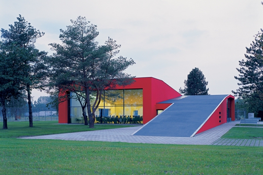 I građevine mogu djelovati na nas na isti način. Često govorimo o formacijama masa, te "skulpturalnosti" ili o "grafičkoj istančanosti” građevinskih nacrta. Tako objekti mogu prelaziti zadane granice: objekti proizvedeni iz sasvim praktičnih razloga mogu završiti u svijetu umjetničkih predmeta, a umjetnički predmeti mogu nadrasti svoje originalne kategorije te zaći u sasvim novu granu umjetnosti. Nova građevina Kataline Csillag i Zsolta Gunthera, multifunkcionalni paviljon u tvornici Audy u Győru, smjelo je prekoračenje tih granica.