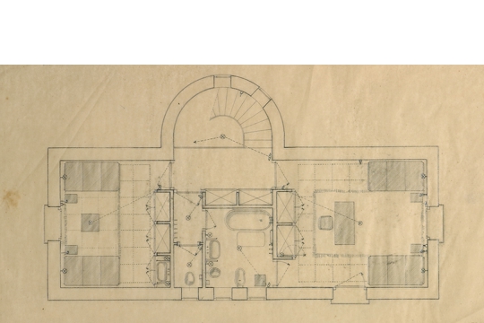 Vila je projektirana u dvije varijante, a izvedena prema drugoj. Razlika među njima dogodila se u sažimanju tlocrta, od T-tlocrta do četverokuta s dodanim potezom gospodarskog trakta. Crtao ju je i nadzirao izvedbu Drago Galić, tada već stalni Iblerov suradnik. Premda je Galić bio uvijek veoma suzdržan u priznavanju svoje uloge u Iblerovim projektima, ta uloga nije beznačajna, a vjerovatno je pojačala upravo osjetljivost za lokalno i pojedinačno.