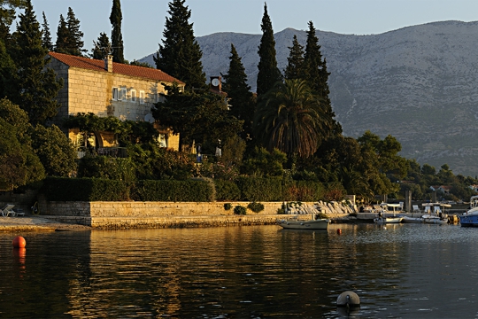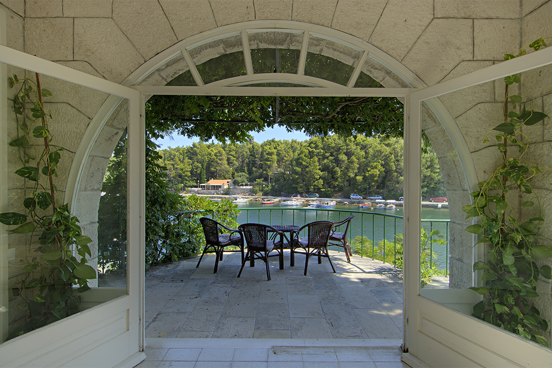 Sve je to Drago Ibler primijenio na svojoj korčulanskoj vili. Ona je uzdignuta nad more kao skulptura na postamentu: odijeljena je od mora dvjema kamenim stubama, a brežuljak na kojemu stoji obrubljen je kamenim stubištem čineći tlo obuzdanim i apstraktnim. Volumen zdanja zapravo je tanak, a oplošje ziđa prilično zatvoreno ili, da ponovim davni opis, vila je tanka poput slike, a otporna poput tvrđave. No premda zidovi štite od sunca i vrućine, a prozori služe da bi ciljali i uokvirivali vidik, tema rastvaranja postignuta je drugim motivom, motivom polukružno otvorene lođe. Taj tradicionalni lučni obris, kako lođa tako orsana, proveden je u dvodimenzionalnim i trodimenzionalnim varijacijama, od luka lođe do poluvaljka podzidane terase, pa sve do polukružnog izmicanja željezne ograde – jer stablo mora rasti. I u unutrašnjosti kuće stubište koje spaja prizemlje s katom ugrađeno je u poluvaljak koji u boravišnoj prostoriji formira neku vrstu apside. Odnosi pravokuta i kruga, odnosno polukruga, čista geometrijska tema, projekcije plohe u volumen i obratno ponašaju se poput glazbene kompozicije.