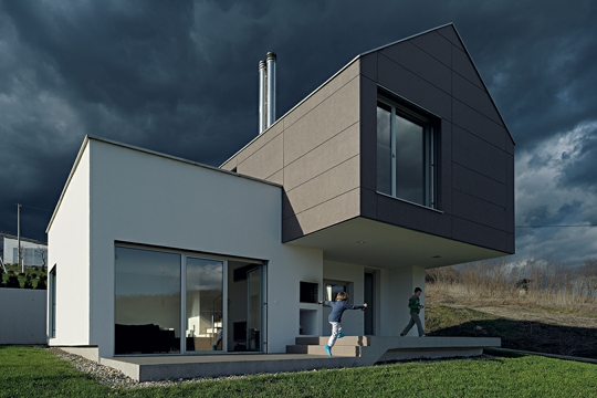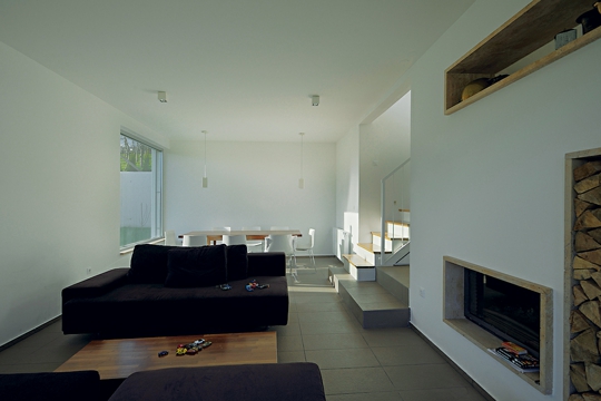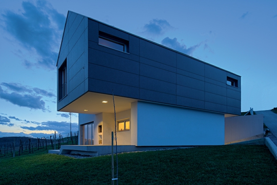 Kuća GV−17 smještena je bliže vrhu padine. Sa sjeverne strane dio je terena izrezan kako bi prizemni pravokutnik bio u njega upušten, a u području između potpornoga zida i kuće stvara se servisni dio za smještaj vozila i ulaz. Interijer prizemlja blago se spušta prema zapadnoj strani, pri čemu dnevna soba dobiva veću visinu. Prizemni dio prati slojnice originalnoga terena, a obujam kata postavlja se okomito na teren. U samome zglobu smješten je komunikacijski dio – stubište u prizemlju – te dnevni dio, koji ima funkciju predsoblja (iz kojega se ulazi u dvije spavaće sobe) na katu. Rotacija omogućuje terasu na katu i dva natkrivena prostora u prizemlju, gdje je sjeverni rezerviran za ulaz, a južni za terasu za roštilj.