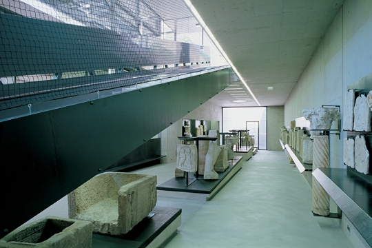 Nadgrobno kamenje i druge iskopine: to podsjeća na dosadni školski izlet u arheološki muzej. Djeca koja zijevaju, suhoparna materija i vrijeme koje nikako da prođe. Austrijski arhitektonski biro Purpur, sa sjedištima u Grazu i Beču, bio je suočen sa građevnim zadatkom takvog sadržaja. U perivoju dvorca Eggenberg je trebala nastati neka vrsta ovojnice za mineralne nalaze svih vrsta, no tako da kod razgledavanja promatrač zadrži dobro raspoloženje. Mali muzej rimskih iskopina iz Flaviae Solvae nastao je kao rezultat natječaja što ga je raspisala Zemaljska vlada [tajerske – prvo mjesto zauzeli su Purpur.Architektur.