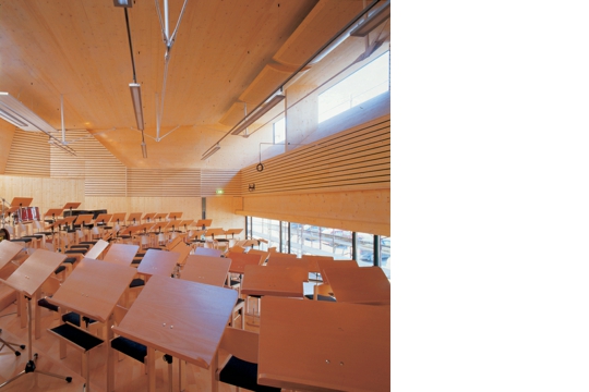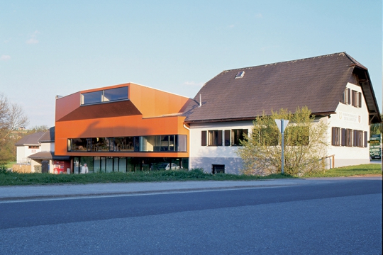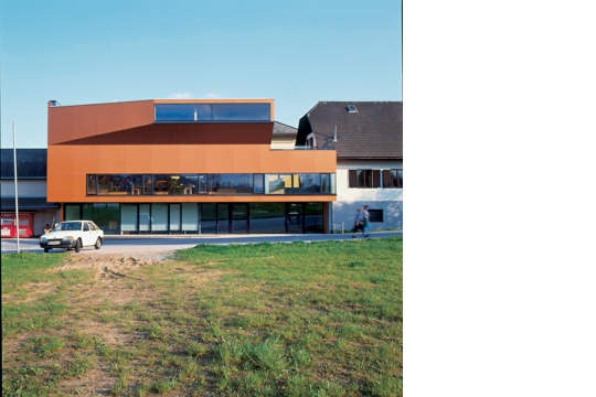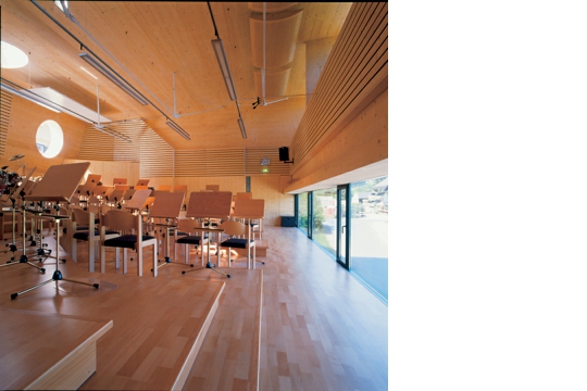 Općinski ured i vatrogasna stanica, općinsko skladište, dom glazbenika i glazbena škola – u jednom takvom konglomeratu zgrada javnog sadržaja je Gerhard Mitterberger na rubu zapadnoštajerskog Stallhofena realizirao dvoranu za probe mjesnog puhačkog orkestra. Projekt svojom formom i materijalnošću slijedi ideju rezonantnog korpusa, ideju zgrade kao instrumenta. Kao što je slučaj kod većine njegovih novijih projekata, kod kojih on ponekad nevjerojatno jednostavnim sredstvima nastoji pronaći optimum funkcionalnih odnosa, tako i ovom malom građevnom zadaćom Mitterberger demonstrira kako i u redukciji sredstava može biti sadržana višeslojnost, rafiniranost rješenja jednog ambicioznog zadatka.