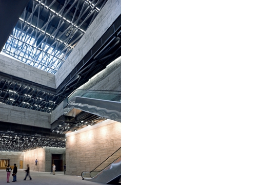 U tu planinu od nosivog betona, dijelom uronjenu u umjetno jezero obrubljeno trskom, posjetitelji ulaze s istoka, kroz četvrtasti otvor širok 30 metara. Tri ‘doline’ (dvije u unutrašnjosti objekta, jedna na otvorenom), četiri špilje (ulaz, hodnik i dvije strane strme vanjske doline) te četiri dvorišta u obliku tunela (dva u središtu i dva u ‘dubini planine’) čekaju da budu istraženi. Četvrtasti gornji dio planine definira veliku terasu, koja nudi pogled na grad, kao i polja i planine.