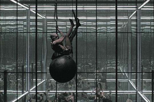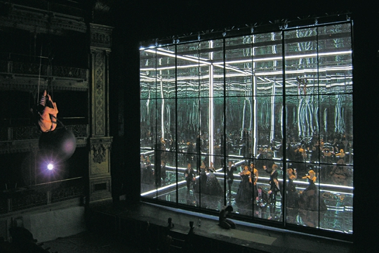 Upravo zato Sven Jonke (i “Numen”) gradi madridski Inferno kao ozrcaljenu kocku, kao prostor bezgraničnih mogućnosti, multiplikacija, kao svjetlo uhvaćeno u gabaritu kazališne pozornice, gdje gledalac poput voajera ugleda sam sebe u paklenskom sistemu. Zrcalo pak vraća upravo toliko – i samo toliko – koliko se u njega uloži. U taj virtualni prazni prostor naseljava Pandur novi Babilon misaonih tokova novovjekog svijeta, slike arhaičnih projekcija, starijih od riječi i morala. U neprekidnim transmutacijama i odbljescima vidimo imperijalno seksualno kazalište kao vrhovni hram očiju zapadne civilizacije. Vidimo fašizam i “pogansku prošlost, nikad umrlu, koja plamti u mističnim hijerarhijama zvjezdane slave” (C. Paglia). Vidimo krv, mučenje, ekstazu, suze – i Danteovu umjetnost, punu zločina. I nema slučaja, tek priroda koja upravlja svojim utezima. Tek pendulum koji se izokrono njiše i iscrtava neizvjesni put. Obraz Inferna u svom naličju dodatno permutira u neprekidno gibanje i pomoću video projekcija (Mileusnić+Serdarević), koje kroz vremenski slijed infernalnog kao pokretna slika ozivljavaju sjećanje civilizacijskog iskustva. Zemljovid pakla iscrtava se u svim segmentima. Zvuk i svjetlost rastu i spuštaju se, te na presjecištu zaustavljaju vrijeme. Promatramo “naš vrli novi svijet” i pokušavamo se probuditi iz noćne more. Promatramo i sretni portret Inferna, sakrivenog iza odbljesaka zrcala, i jednu jedinu misao koja ispunjava vječnost. “To je istovremeno prostor”, kaže Serdarević “koji niječe osnovno pravilo gotike – da demoni nemaju vlastiti odsjaj u zrcalu”. A gdje su svi odsjaji? U Pandurovom Infernu, dakako; nastanjenom multipliciranim demonskim refleksima. ”Vidjeti svijet u zrncu pijeska”, kako kaže Blake; ili u refleksu zrcala, koja su također načinjena od pijeska. Pandur režira Inferno uhvaćen u ozrcaljeni kubus kao arhetipske slike, koje istovremeno prizivaju u sjećanje brojna umjetnička djela zapadnog civilizacijskog kruga, ali se isto tako snažno odnose na iskonske slojeve postojanja. Odraz svjetlosti u zrcalu ne mijenja njegovu prirodu, a ipak sadrži određeni aspekt iluzije. Tko se sve prepoznaje u odbljescima Inferna, glatkim i čistim, ili u razbijenom ogledalu koje, iznova sastavljeno, odražava tek razbijenu sliku svijeta? Pakao smo, dakako, i mi sami, pakao nisu samo drugi.