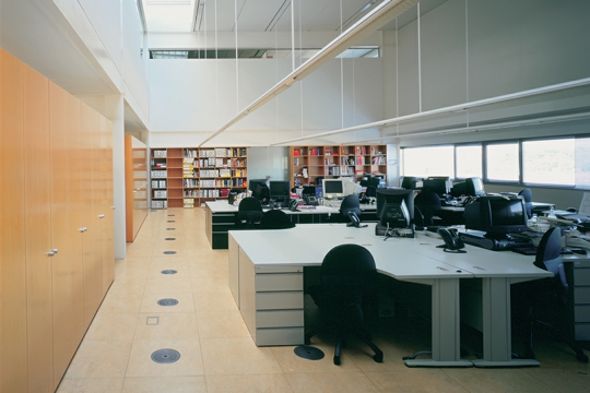 Poput ležećeg čeličnog diva. Poput vlaka, poput broda. Zgrada metalne opne uz cestu. Sjedište tvrtke SM Editorial je rezultat lokacije na kojoj je smješteno koristeći suvremene graditeljske tehnike, pokazujući svoju namjeru da potraje kroz vrijeme. Smještaj uz rub ceste i oblik parcele daju naslutiti unutarnju organizaciju zgrade, koja je paralelna s cestom po linearnoj shemi, a s druge strane, to je vrlo prikladno rješenje za organizaciju uredskih prostora, što je potrebno tvrtki koja predviđa buduća proširenja.