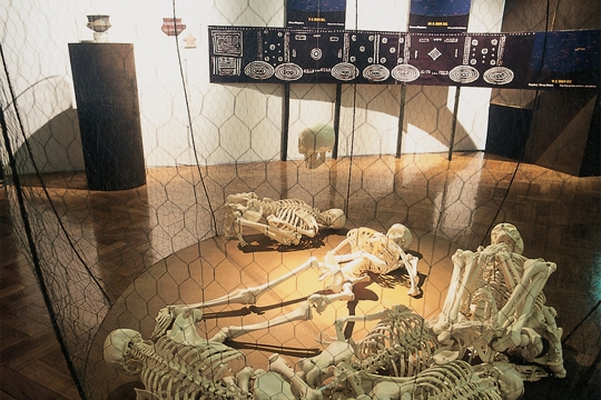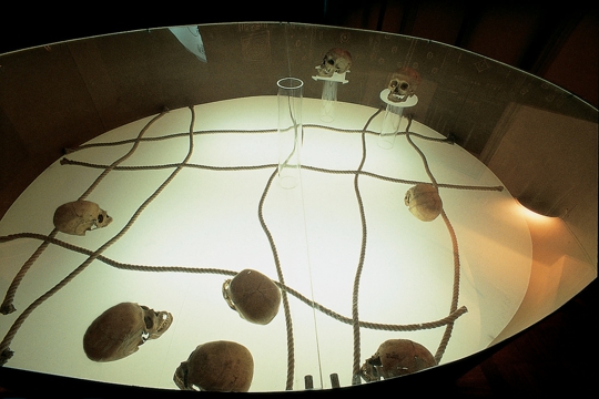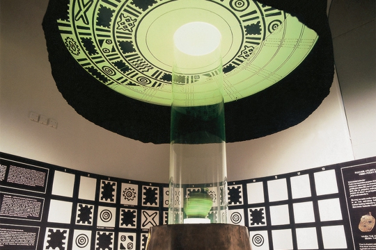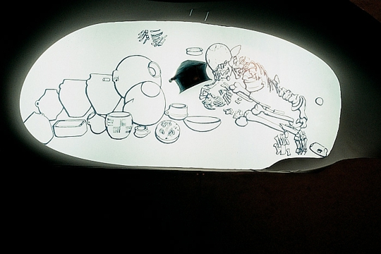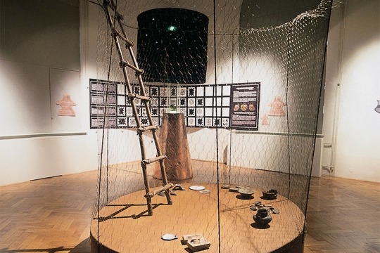 Kako nisam želio da “Vučedolski Orion” bude izložba-senzacija o najstarijem europskom kalendaru nego prije svega prikaz vučedolske predodžbe svijeta, Kovačić ju je tako postavio da kalendar bude tek mamac za nešto što naoko ima manje atraktivan prizvuk za buduću publiku. Šezdesetak posuda, što čitavih što keramičkih fragmenata, te sedam lubanja moralo je dočarati spoznajnu razinu o svijetu kojom je stari Vučedolac raspolagao, dakle isključivo nematerijalni svijet 5000 godina stare kulture s kraja europskoga bakrenog doba.