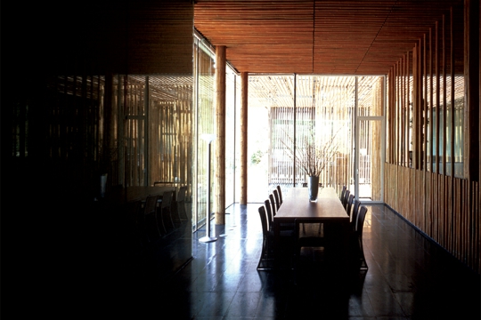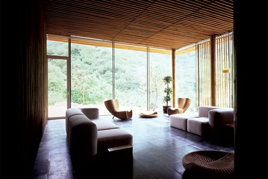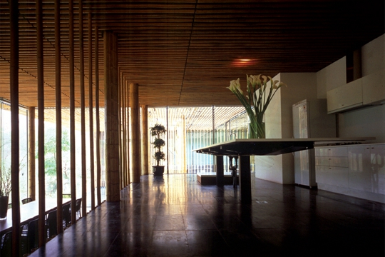 Strašno volim bambus. Zato želim graditi kuće od bambusa. Podovi, zidovi i stropovi – sve je od bambusa. Onda tu živim, okružen, umotan u bambus. I stupovi su od bambusa. Ima nekoliko poteškoća pri izradi stupova od bambusa. Vanjski dio bambusa, njegova “koža”, tanka je i krhka, a bambus je teško upotrijebiti kao građevinski stup. Unutarnji vaskularni snopovi bambusa imaju tvrde opne što razdvajaju prazne cijevi unutar biljke duž cijele stabljike. Ali one biljke – stupovi, što ih ugrađujem u svoje kuće imaju u sredini čeličnu šipku učvršćenu betonom i to po cijeloj dužini šuplje stabljike. Stupovi od bambusa izvana izgledaju savršeno prirodno, ali sredina im je pojačana betonom i čelikom.