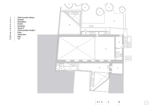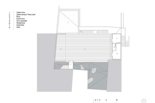 Odista poetična situacija ostvarila bi se otvaranjem dvorana za probe gdje bi plesni događaji postali dio scene dvorišta, čime bi odista profitirali i interijer i eksterijer, no ekstremna skučenost i konstrukcijski problemi spriječili su tu mogućnost. Svakako je dobro što je zadržana krovna terasa ljetnog kina, ne samo kao podsjetnik na taj već gotovo zaboravljeni oblik urbanog života, nego i kao još jedan otvoreni prostor koji može biti iskorišten na različite načine. Je li on trebao postati svima i uvijek dostupan produžetak otvorenoga javnog prostora, možda povezan i s parkovnim uređenjem obronaka Griča, drugo je pitanje.