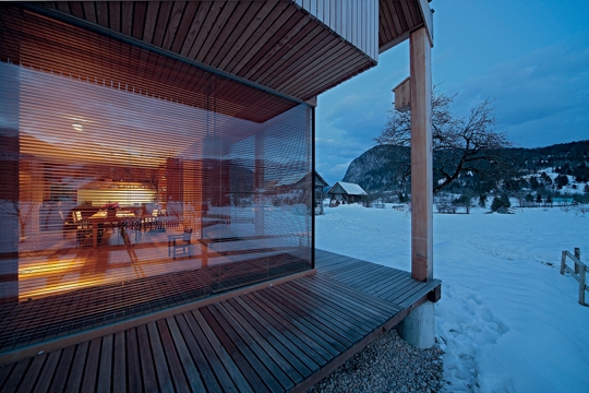 Raznovrsni opus arhitektonskog biroa Ofis arhitekti prošle je godine obogaćen manjom kućom za odmor blizu Bohinja. Kuća djeluje svojom smirenom pojavom promišljeno, a gotovo da predstavlja (s izuzetkom oproštajne kapele u Krašnji koja je dobila priznanje Building of the Year 2009 i nekih drugih manjih stambenih objekata) neobično ostvarenje spomenutih arhitekata. Svojom in cognito pojavnošću dokazuje kako se arhitekti, inače poznati po «izumima» neobičnih, šarolikih i pretežno u prostoru eksponiranih fasada, znaju umiriti i naći promišljenu, pretencioznu (a pritom gotovo klasičnu) fasadu, koja doduše skreće pozornost na sebe brižljivo izrađenim detaljima, a ipak se dobro stapa sa svojim okolišem.