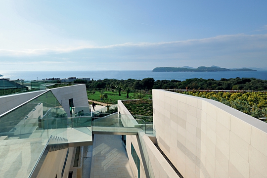 Odličan poznavalac građevne umjetnosti kao i anonimne arhitekture Dalmacije, a usto i osobito ljubitelj dubrovačkih ljetnikovaca, Boris Podrecca nije ulazio u nepoznati kulturni krajolik kad je počeo s radom na obnovi i prigradnji hotela na dubrovačkoj periferiji. Dakako, arhitekt poznaje i tradiciju moderne, osobito radove Nikole Dobrovića - lopudski hotel Grand s nasadima agava na krovu, ili pak dubrovačke i lopudske vile s kalkuliranom i preciznom uporabom vodenih površina. Povijesne reference tek su povod za razmišljanje, ali nikada uzorak koji bi se ponovno multiplicirao. Podrecca u svakoj sredini radi kontekstualno, no riječ je o široko zahvaćenoj kontekstualnosti pri čemu ona kulturalna ima osobitu važnost. Uzimajući u obzir topografske, vremenske i ambijentalne parametre, on se približava za njega specifičnim, „arhikulturnim“ rješenjima.