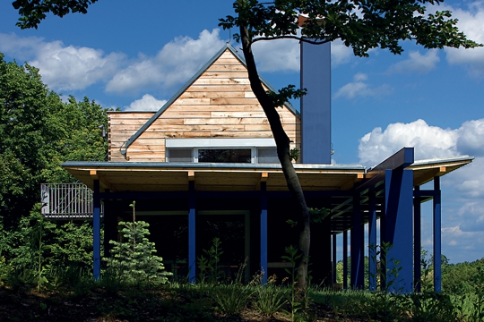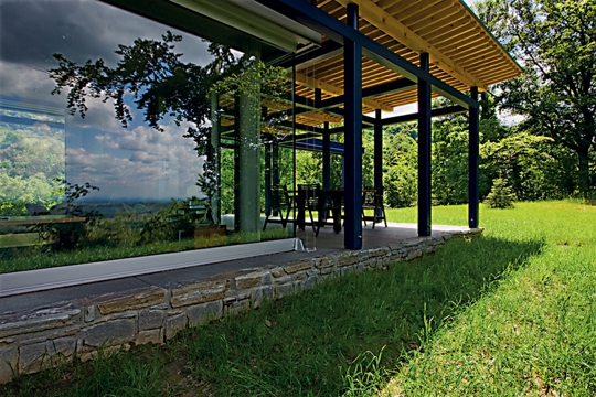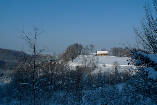 ...Pronaći ujutro svježe tragove srne ili vepra, biti usred ljetne oluje ili snježne mećave, slušati u rano jutro glasanje ptica, doživjeti dramatične zalaze sunca iza paralelnih nizova zagorskih brda, za gradskog čovjeka znači voditi jedan paralelni život, potpuno suprotstavljen onom urbanom. Takav život uključuje i prirodni red stvari: sije se i sadi te ubiru plodovi kad je za to vrijeme. Mogućnost takvog paralelnog života ostvarili su zagrebački arhitekti Jasminka i Andrija Rusan na jednom od sjevernih obronaka Zagrebačke gore. Za Andriju Rusana to predstavlja povratak korijenima jer je rodni kraj njegovih roditelja posve u blizini. Hektar i pol zemljišta zaraslog u šikaru danas je regulacijom reljefa te sadnjom voćki i primjerenog drveća kultivirano na obziran način, usklađeno sa šumovitim obroncima i susjednim njivama.
