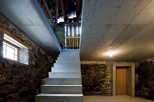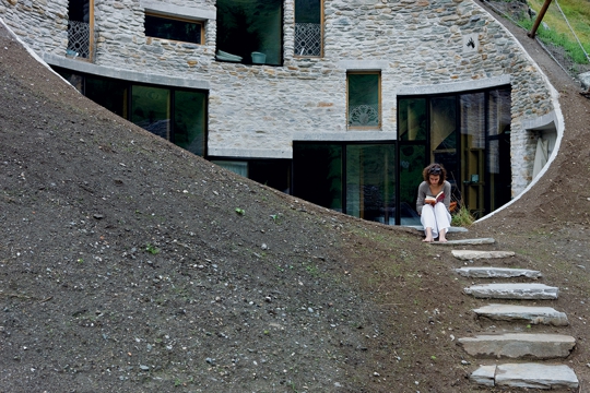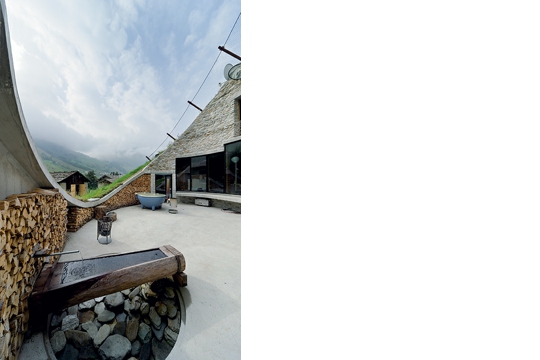 Kako sagraditi kuću za odmor u Švicarskoj, a da se ne zapadne u klišej tradicionalne "švicarske kuće"? Što učiniti kad je lokacija vidljiva posjetiteljima Terma Vals, jednog od vrhunaca suvremene arhitekture u svjetskim razmjerima poznatoga švicarskog arhitekta Peter Zumthor? Nedavno otvorena vila Vals odgovara tako što se samozatajno skriva. Jedino što se vidi jest rupa u brdu koja služi kao dvorište podzemne kuće za odmor s četiri spavaće sobe. "U planinama nema smisla graditi visoko kad već imate dobar pogled", objašnjava arhitekt Marijn Mees iz amsterdamskog ureda SeARCH, koji je sagradio kuću u suradnji s Christian Müller Architects. "Ova kuća pokazuje svrhu gradnje u brdu; strana s prozorima osigurava da svaki prozor ima spektakularan pogled. Rubovi rupe uokviruju pogled kao da je slika." Zato su u planini probušili jajastu rupu, stvorili betonsku dvoetažnu ljusku na višoj strani i pokrili je zemljom, tako da je ostala samo rupa u travi. Da nađete vilu Vals, trebaju vam upute. Ulazite kroz tradicionalni drveni sjenik, poput bezbrojnih sjenika koji se mogu naći na okolnim obroncima. Ovdje nema ni krava ni sijena: unutra ćete naći parkiralište i spremište sa stubama koje vode u tunel dug 22 metra. Betonsku špilju osvjetljavaju dva prozora na stropu koji prekrasno ističu glatke, sive zidove i oštre, četvrtaste rubove. Na putu raste napetost u iščekivanju stvari koje slijede. Mračni tunel vodi vas u dvorište i dom pun svjetlosti.