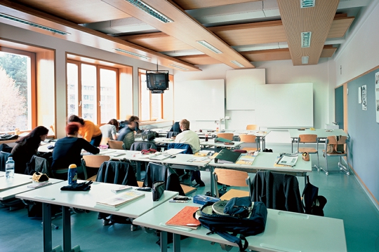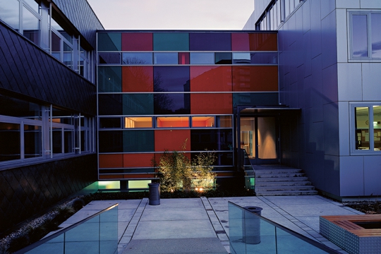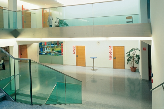 U gustom gradskom području sve će češća zadaća za arhitekte biti: postojeće građevine privesti novim funkcijama, odnosno dovesti ih na tehnološki nivo današnjih zahtjeva. Nerijetko se pristupa i redizajnu fasada iz 60-ih i 70-ih godina, dotrajalih u materijalnom i oblikovnom smislu. Čitav raspon ove tematike obuhvatila je zadaća sanacije dijela Više tekstilne škole u Klagenfurtu, povjerena koruško-švicarskom timu – Sonji Gasparin i Benyju Meieru. Kompleks škole, u blizini Klagenfurtskog velesajma, predstavlja konglomerat zgrada iz različitih razdoblja – od 1900. do 1970-ih godina, pri čemu se aktualni zahvat odnosi na tri objekta zapadne strane kompleksa.