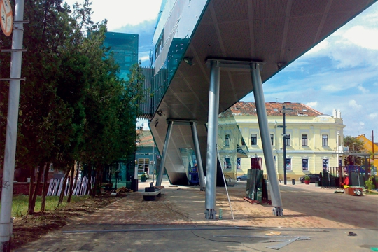 Pješački nathodnik je dio šireg projekta cjelovitog uređenja prostora oko osječkoga glavnog kolodvora, Trga Lavoslava Ružičke. On obuhvaća uređenje samog trga kao pješačkog prostora, izgradnju poslovno-garažne zgrade na istočnoj strani trga (dijelom na prostoru staroga autobusnog kolodvora koji se uskoro seli na novu lokaciju) te rušenje staroga, rešetkastog, čeličnog pješačkog nathodnika preko željezničke pruge i izgradnju novog. Što se novog nathodnika tiče, treba reći da vjerojatno nikada konzervatori ne bi dozvolili rušenje starog nathodnika da je zadovoljavao tehničke zahtjeve uvjetovane prolaskom željezničkog dijela koridora 5c u smislu potrebne veće slobodne visine. No, u početku je prevladavajuće rješenje bilo, umjesto pješačkog nathodnika, gradnja pješačkog pothodnika ispod zgrade kolodvora, ispod svih kolosijeka na prostor južno od željezničke pruge. Čak su za taj pothodnik, s lokalima i izlazima na perone, bili naručeni i izrađeni projekti do razine glavnog projekta.