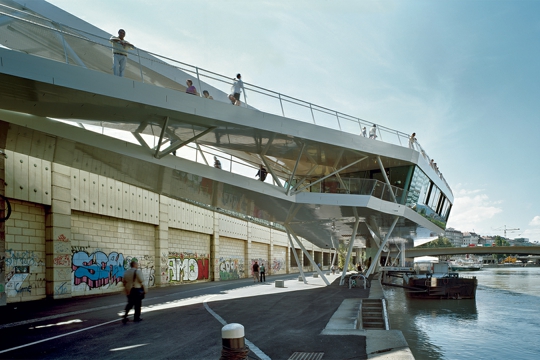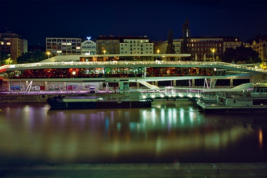 Bečki Donaukanal izvorno je bio jedan od brojnih tokova Dunava koji su meandrirali poljanama. Nakon regulacije rijeke i uspostavljanja njene plovnosti 1860-tih godina postao je vodeni tok, sada pod nazivom "Kanal" dijelom grada 19. stoljeća, pogodan za provođenje slobodnog vremena na plutajućim riječnim kupalištima. Ovo područje obilježila su zlodjela nacionalsocijalista u susjednim židovskim gradskim četvrtima, potom borbe oko povlačenja tijekom posljednjih dana Drugoga svjetskog rata, nakon rata obnova u smislu pogodnosti za automobilski promet. No, još do danas Dunavski kanal također karakterizira trasa gradske željeznice koju je projektirao Otto Wagner, a sada služi kao linija podzemne željeznice. Do 1990-tih godina ovaj ambijent nije bio naročito privlačan, čemu su dodatno pridonosili štropot vlakova i blijeda, slaba rasvjeta. Pojavljivanje pankerskog kluba nezavisne scene Flex te ponešto pomodnijeg Summer Stagea na Kanalu označilo je početak razvoja u gastronomskom, a onda i sve više u arhitektonskom smislu, što je sada kulminiralo izgradnjom pristaništa za Twin City Liner.