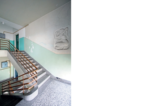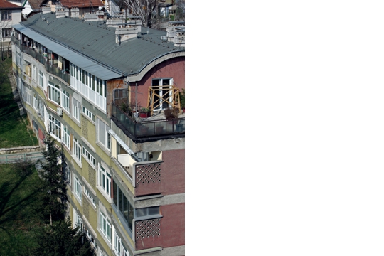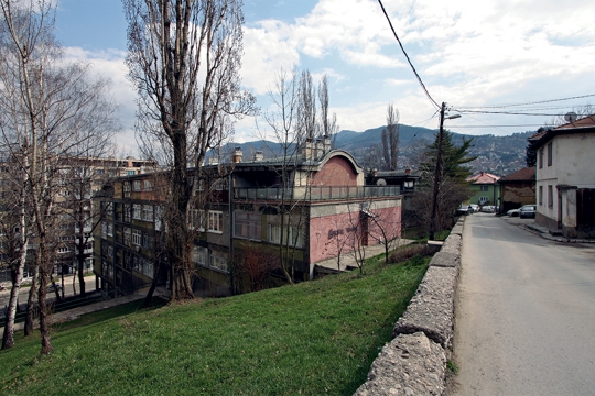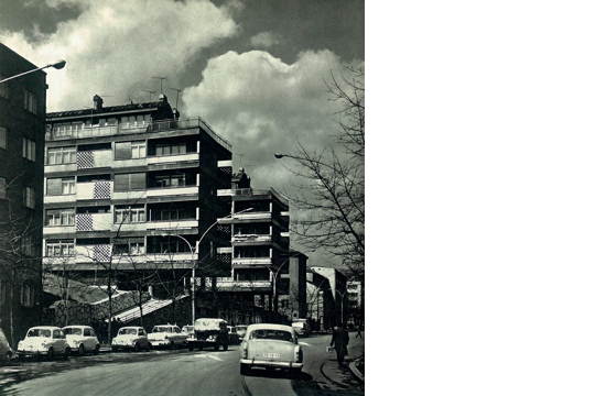 Kompozicija od dvije stambene lamele na ozelenjenoj padini u Alipašinoj ulici u centru Sarajeva predstavlja doprinos kulturi stanovanja kroz sintezu moderne stambene funkcije i preoblikovanih principa graditeljskog naslijeđa. Jednostavni polikromni geometrijski volumeni, koji izranjanju na stupovima i završavaju oživljenom petom fasadom, prepoznatljiv su arhitektonski izraz Jurja Neidhardta, nadahnutog principima Le Corbusiera. Cijela je kompozicija postavljena na kameni postament izveden od lokalnog materijala, s funkcijom uličnog podzida. Analiza fasadnih elemenata pokazuje suptilnost i sadržajnost oblikovnih transformacija bosansko-hercegovačke tradicionalne kuće. Pa su tako prepoznatljive asocijacije poput višekatnog doksata na stupovima; segmentne betonske ljuske podsjećaju na kupolaste siluete čaršije; poštivanje „prava na pogled“ postignuto je valovitošću fasade izvlačenjem lođa, kako bi se postigle povoljnije vizure; romboidne perforacije na zidnoj masi podsjećaju na drvenu mrežu mušebaka , te popločenje prilaznih rampi kaldrmom - kamenim oblutcima avlija.
