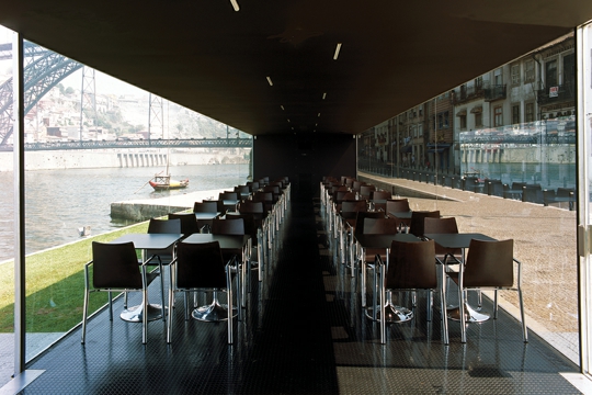 Café do Cais se nalazi na desnoj obali rijeke Douro u četvrti Ribeira u Portu. Projektom se je pokušala nastaviti logika privremenih elemenata, kioska uz cestu i brodova usidrenih uz obalu koji su konstanta u ovom riječnom okruženju.