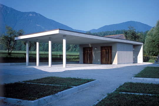 Objekt za oproštaje u Kotljama, idiličnom ruralnom naselju ispod Uršlje gore, odlikuje se prilagođenom umještenošću u mikro i makro prostor. Iz te situacije proizlazi i fukcionalno-oblikovno pročišćeni arhitektonski koncept koji na funkcionalno – simboličkoj razini povezuje novi i stari dio groblja sa Crkvom sv. Marjete u ambijentalnu cjelinu. Novi objekt za oproštaje prostorno određuju južni i zapadni rub proširenog dijela groblja, oblikuje njegov jugozapadni ugao, te zaustavlja, odnosno mijenja smjer novog pristupnog puta koji vodi uz istočni rub potoka Kotuljka kroz aleju čempresa. Na istočnoj strani se postupno između stabala razotkriva Crkva sv. Marjete sa zvonikom i zidom kojim je okružena. Tako uređen novi pristup groblju vizualno zatvara “freska” s motivom đurđica na zidu oproštajnog objekta. Put zakreće pred zgradu, gdje je uređen servisni ambijent sa zdencem i klupom, do velikog betonskog baldahina koji prekriva vanjski obredni prostor i namijenjen je rastanku od pokojnika. Dalje put kroz obziđe vodi do crkve.
