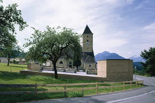 Prva crkva Clemensa Holzmeistera (1921.-1923.) je svojom plastičnom izražajnom snagom u brdskom selu Batschunsu postavila temelj za poneku arhitekturu vrijednu pozornosti. Godine 2002. je u blizini nastao lokal za pokuse mjesnog glazbenog udruženja koji su projektirali arhitekti Marte.Marte, a nešto ranije su braća Marte proširili i groblje uz crkvu. Grobno polje sa zidom za urne na strmom terenu nalazi svoj mirni završetak u masivnom korpusu od ilovače grobljanske kapelice.