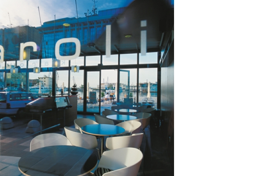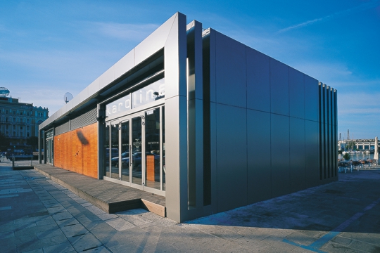 Arhitektura paviljona nadovezuje se, znači, na pravila luke. Paviljon je limeni kontejner dimenzija 10 x 25 metara, prorezan po duljim stranicama, varen, slagan u brodogradilištu, te prislonjen na gat. Služi luci i svojim korpusom korespondira sa remorkerima, dizalicama, tankerima, hangarima i cijelim čudom metalnih oblika jedne luke.