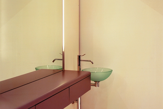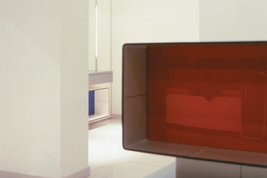 Pristup zadaći pregradnje uvijek je odre|en odnosom prema datostima i ograničenjima postojeće strukture. Specifičan pristup arhitekta Lebara rješenju interijera ovog salona temelji se ne samo na novouspostavljenim prostornim odnosima, brižljivom odabiru materijala te adekvatnom dizajnu rasvjete, nego i na brizi za sociološki aspekt zadatka.