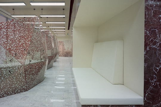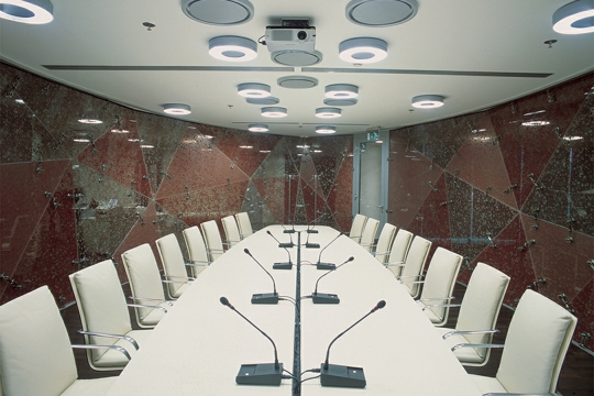Kako napraviti dobar interijer u najnemogućijoj zgradi u gradu, ako se, uz to, ne radi o nekoj staroj kolibi nego o potpuno novom poslovnom zdanju? Tako da ga, naravno, ignoriraš. Postaviš u zgradi šatore i praviš se kao da ga nema.