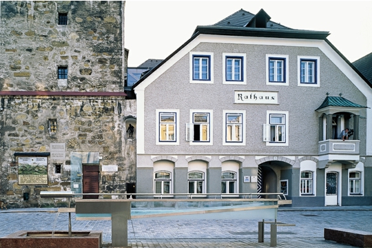Povijesni gradić Waidhofen, smješten usred prirodnog okoliša uske riječne doline, spominje se kao grad prvi put 1288. godine. Gustu gradsku strukturu izme|u utvrda na hrptu brežuljka, iznad riječne sutjeske, karakteriziraju dvije protusmjerne gradske “praznine”: Gornji i Donji gradski trg, koji uz gradsku vijećnicu i ure|enje obale rijeke Ybbs predstavljaju realizirani dio cjelovitog “Gradskog projekta” što ga arhitekt Beneder provodi kao “work in progress”. Drugi, još nerealizirani dio odnosi se na prometnu infrastrukturu: izgradnju autobusnog terminala i četverokatne garaže.