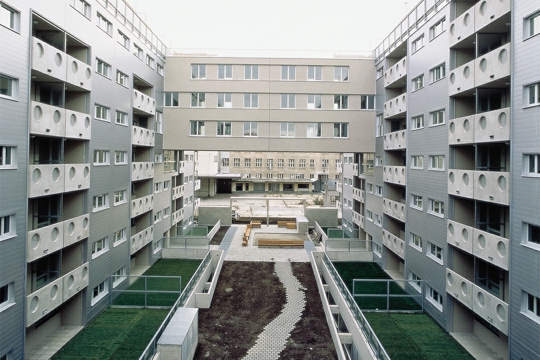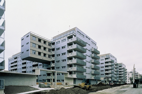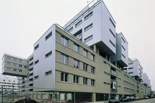Rješenju stambenog kompleksa Laxenburgerstrasse – Dieselgasse, na mjestu napuštenog industrijskog skladišta, prethodila je detaljna urbanistička analiza okolnog područja guste blokovske izgradnje bečke radničke četvrti Favoriten. Izme|u intenzivnim prometom opterećene Laxenburgerstrasse na zapadnoj granici zemljišta, napuštenog industrijskog područja na južnoj, nove stambene izgradnje s dostatnom infrastrukturom na njegovoj istočnoj strani te guste blokovske izgradnje na sjevernoj granici, arhitekti su razvili urbani uzorak (pattern).