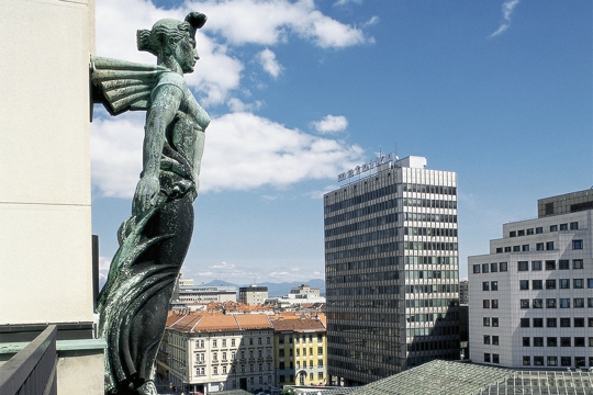 O prvom amerikanizmu u Ljubljani, prvom neboderu, koji je 18. travnja 2001. slavio 70. godišnjicu polaganja kamena temeljca, govorit ćemo kroz medij novca i s njime povezane priče. Glavna priča govori o nastanku Nebodera, investitoru – Zavodu za mirovinsko osiguranje (Pokojninski zavodu – PZ), arhitektu Vladimiru Šubicu, građevinarima, kiparima, pa i slobodnim zidarima. Priča prikazuje strukturiranost tadašnjeg društva u Ljubljani, govori o moći malobrojnog građanskog staleža kod nas u Sloveniji, snovima i (ne)uspjesima tadašnjih ljudi. Svrha studije je pokazati kapitalističku produkciju prostora i nakon II. svjetskog rata u Sloveniji sistematski negiranu arhitektonsku činjenicu da su prostori bogatstvo, a arhitektonski objekti posao.