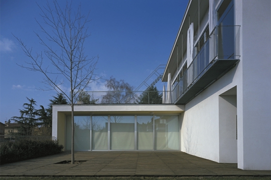 Intervencija je izvedena na rubnom dijelu rezidencijalne zone obiteljskih kuća izgrađenih šezdesetih godina. Naručitelji su tražili dvije zajedničke, ali nezavisne stambene jedinice kako bi dobili i stambeni prostor za roditelje.