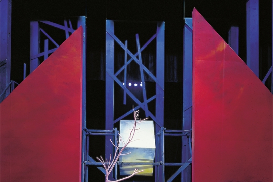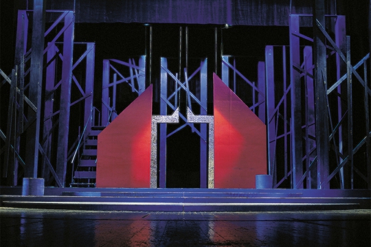 Znao sam odmah, a i prvi razgovor s Matkom Trebotićem to je potvrdio: valja zaboraviti legendu, srednjovjekovni dvorac, gotiku. Treba stvoriti visoko tvorbeni, metaforički prostor. Na taj zahtjev Trebotić je odgovorio velikom, zastrašujućom temeljnom konstrukcijom od drvenih greda raznih veličina, oblika, debljina. Isprepletene, njihove vertikale, horizontale, dijagonale stvaraju mrežu, raster, ali što je ponajvažnije – i klopku. Opasnu klopku, s prividom otvorenosti prema prostoru, s toliko prividnog prozračja, ali zaista mrežu, klopku u koju će uletjeti neoprezna ptica. Tom je konstrukcijom opasana pozornica. I zatvorena.